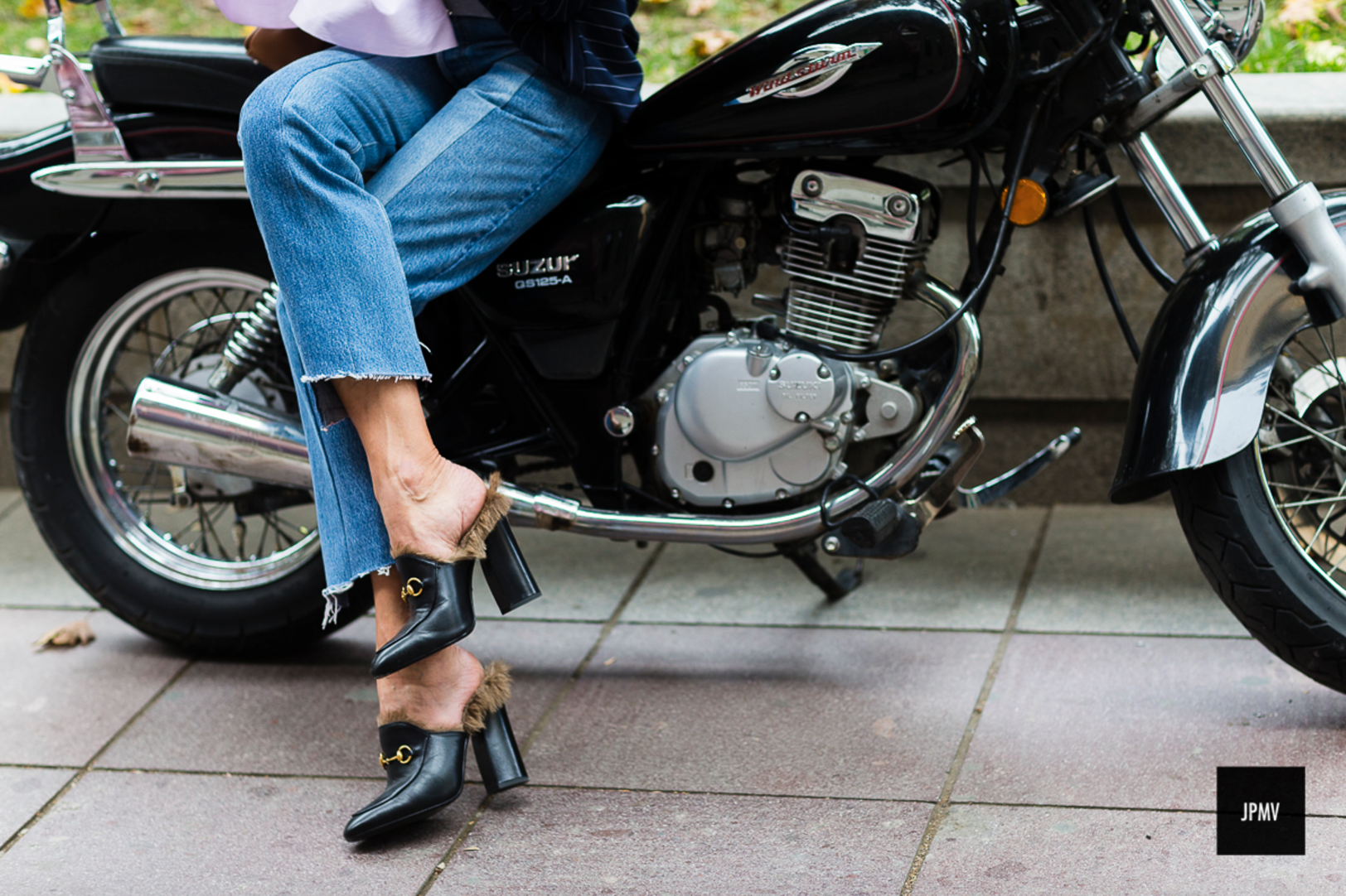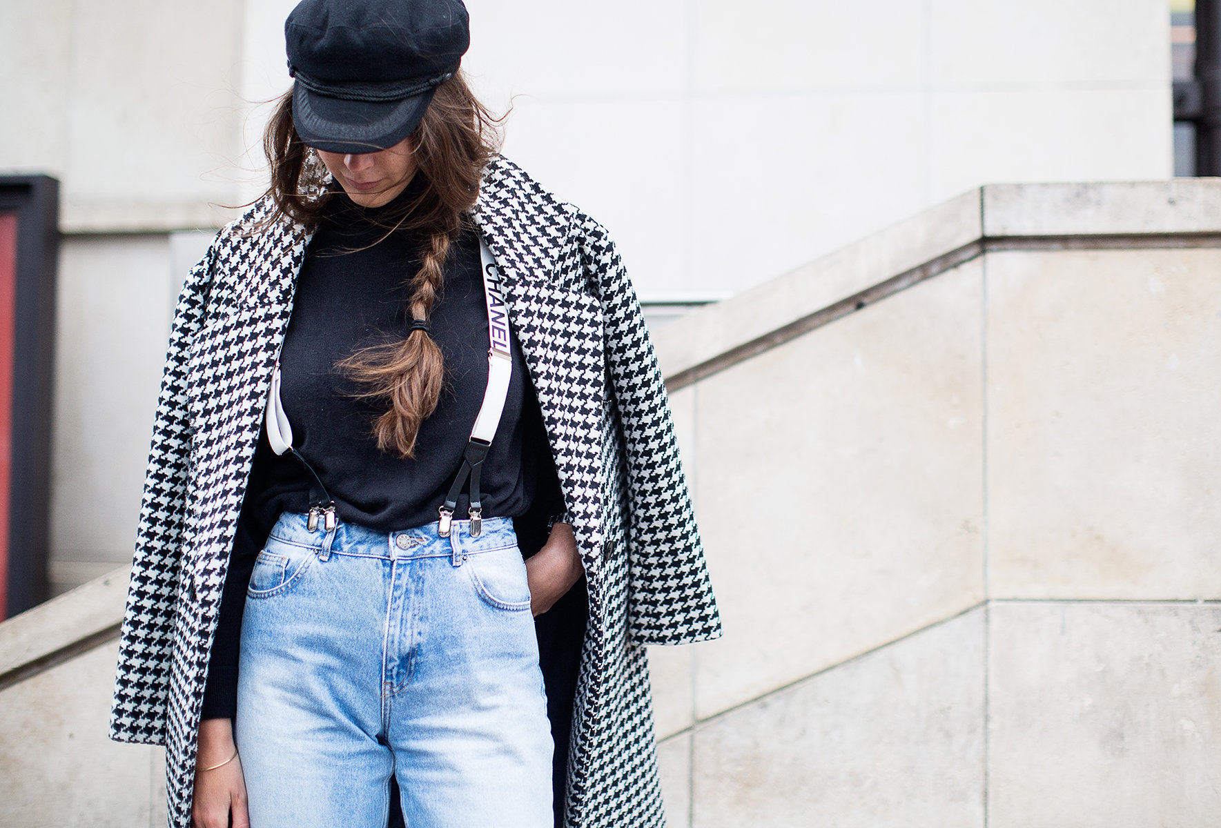 Estelle Pigault in a Topshop coat, Levis jeans, and Chanel suspenders - seevogue.blogspot.fr