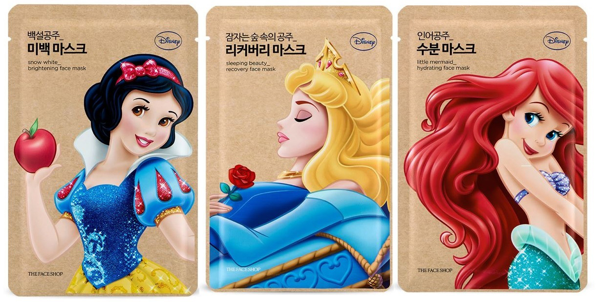 Enfin la marque coréenne The Face Shop mise sur une gamme de masques en tissu à l’effigie des princesses Disney. Les bienfaits de chaque masque étant associé à la princesse qui le représente : Raiponce pour l’entretien des cheveux, Cendrillon pour l’hydratation des pieds…