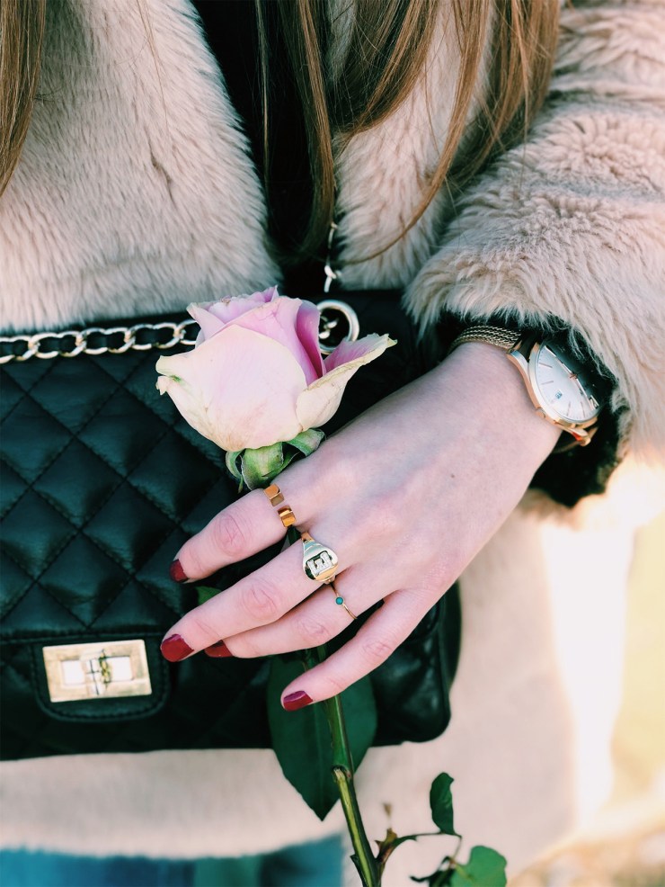 Je suis amoureuse des bijoux fins et plus particulièrement des bagues que j’aime porter à chaque doigt. C’est donc sans surprise que j’ai fais graver un « E » sur ce modèle chic et un brin bling-bling !